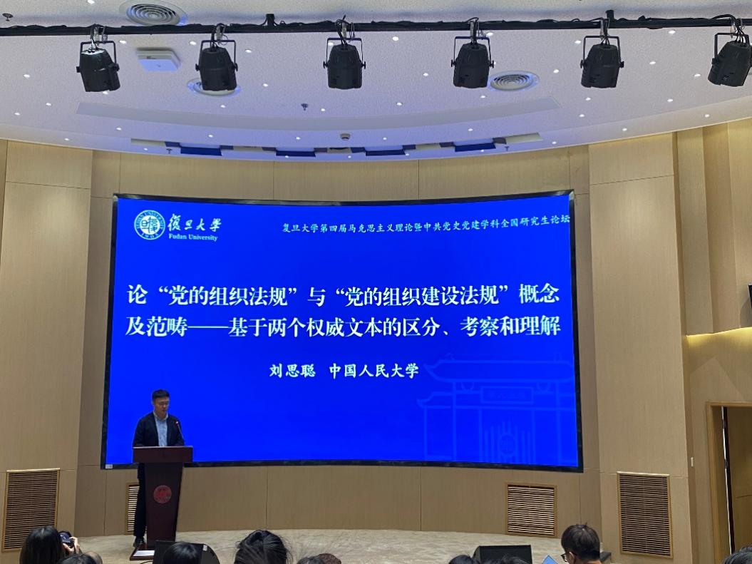 发布日期:2023-10-252023年10月14日至16日,复旦大学第四届马克思主义理论暨中共党史党建学科全国研究生论坛在上海举办。公司2023级党的建设(党内法规)专业博士研究生刘思聪向论坛提交的论文《论“党的组织法规”与“党的组织建设法规”概念及范畴——基于两个权威文本的区分、考察和理解》获评特等奖,并获邀在会议主论坛上就该论文作学术报告。