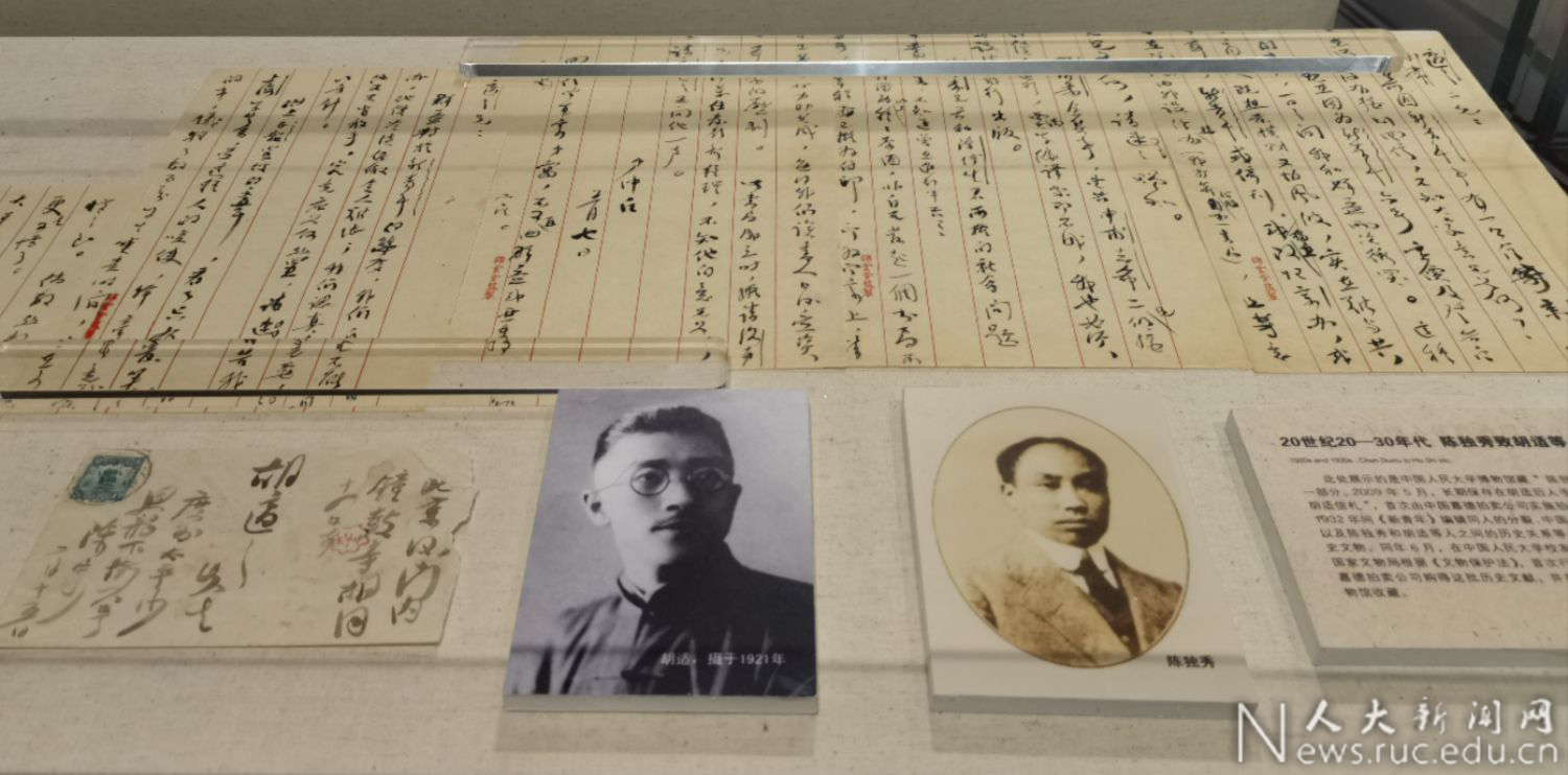 2009年,人大博物馆通过国家文物局优先收购和员工胡陆军、黄曙明捐赠,收藏了陈独秀、梁启超致胡适等信札,现为博物馆重要藏品。这批信札主要写于1920-1921年间,集中讨论了《新青年》杂志如何继续办刊的问题,包括办刊思路、办刊地点、稿源、经费、定价、发行等。信札内容表面上是《新青年》编辑同人对于办刊思路的分歧,实际上是问题与主义之争的继续,反映了早期马克思主义者对真理的追求与探索,是建党初期的一批重要文献。为系统展示精品馆藏,提升博物馆对外形象,扩大博物馆文化影响力,打造人博品牌,人大博物馆与翰墨轩、人民出版社合作,编辑《思想之光——陈独秀、李大钊等信札手迹》。该书现已由人民出版社正式出版。