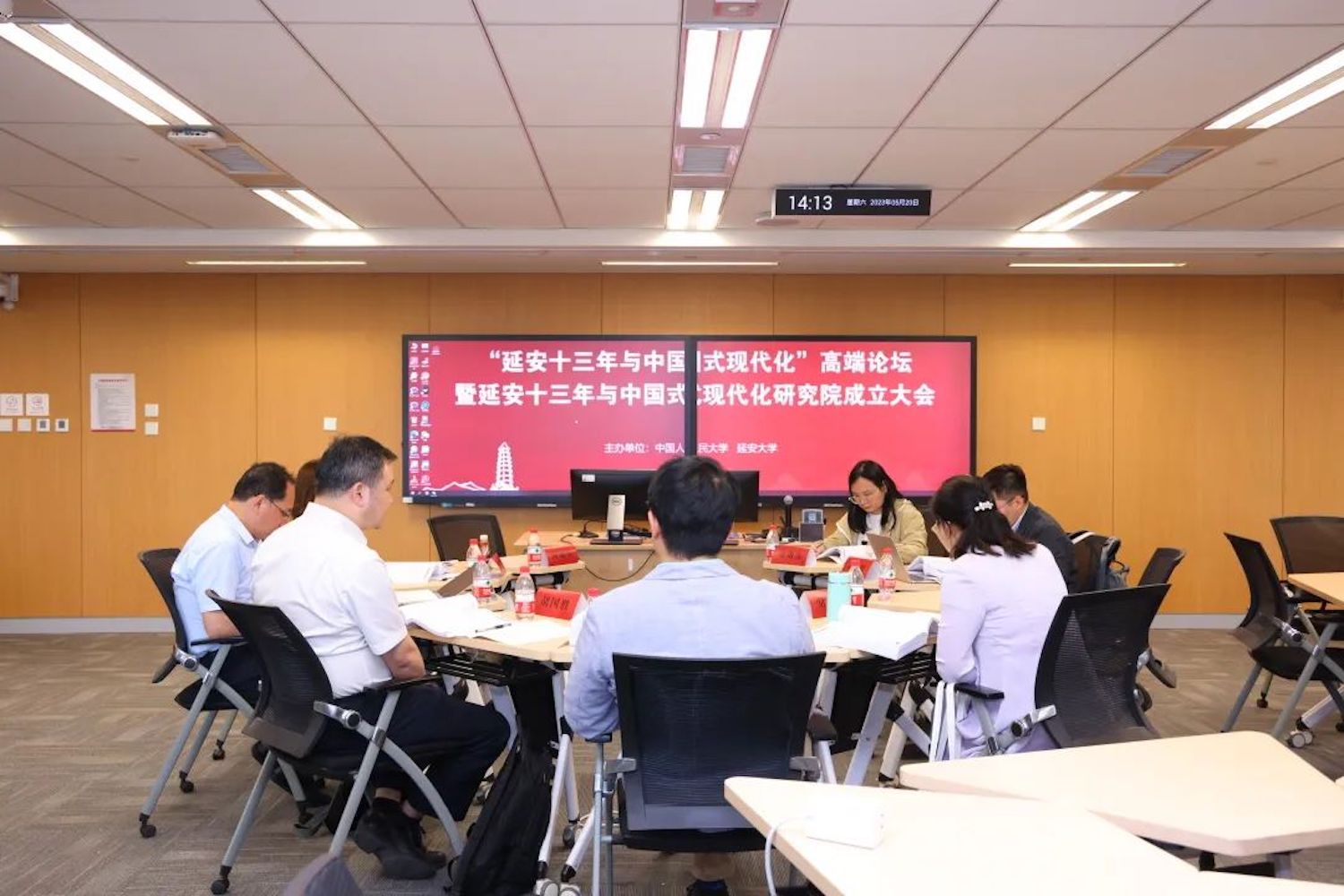下午,来自清华大学、北京大学、复旦大学、南京大学、中山大学、山东大学、延安大学等高校和科研院所的专家学者围绕四项议题进行分组研讨,就延安十三年与中国式现代化研究畅所欲言、分享交流。