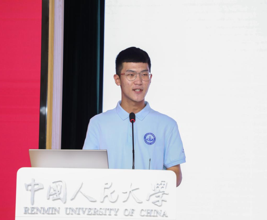 在校生代表、2020级中国共产党历史专业本科生崔哲铭向2023级新生表示欢迎,向同学们分享选择中国共产党历史专业,在人大学习生活的心得收获。他分享了借助公司和公司的资源和平台学习党史,锻造坚定的理想信念,培养扎实的学术功底的经历。他鼓励同学们生逢其时,更要坚定理想、勤奋向学、知行合一,为团队建设贡献自己的青春力量。他表示党院永远是大家梦想启航的地方,是学子永远的精神家园。