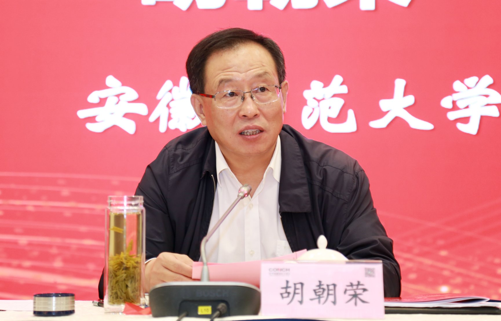 胡朝荣代表安徽师范大学致辞,简要介绍了安徽师大的办学历史、人才培养、发展态势等基本情况,以及马克思主义公司的办学发展历程、团队建设状况、教学科研成果以及优秀思政课教师典型代表,并预祝此次大会圆满成功。